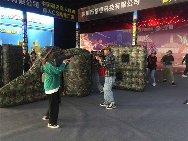 深圳銘恒的真人CS裝備和真人吃雞裝備起源網(wǎng)絡(luò)游戲,作為線下真人游戲裝備廠家,與本次國際電子競技大賽有極好的融合點(diǎn),現(xiàn)場參觀比賽的觀眾表現(xiàn)了對銘恒真人CS裝備、真人吃雞裝備和激光模擬打靶設(shè)備的極大興趣?,F(xiàn)場體驗(yàn)真人CS裝備的客戶絡(luò)繹不絕,非常轟動(dòng)。